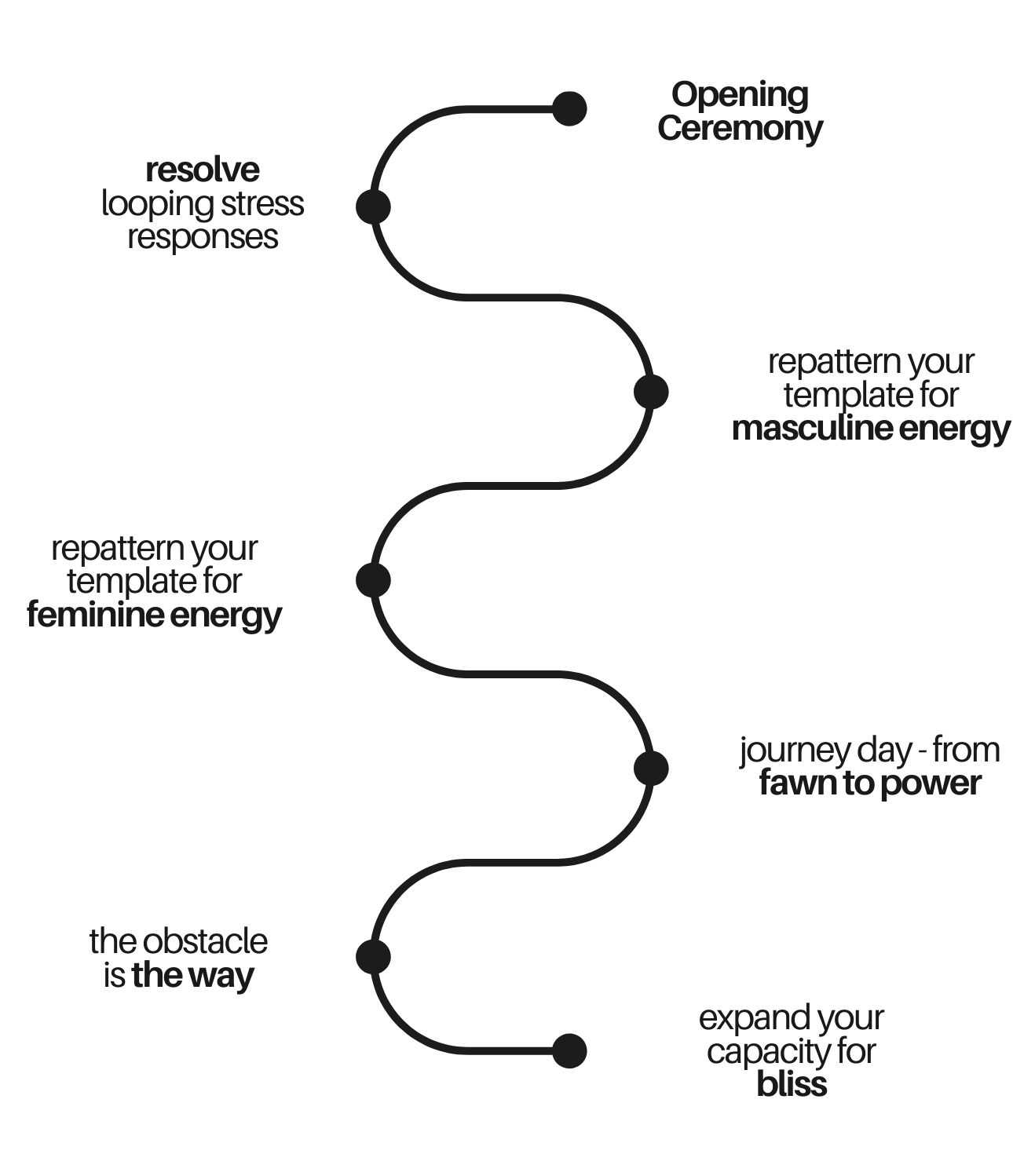 Each woman coming through The Mothership may have a different level of experience with breathwork & somatics, but their general journey arc throughout the program is the same: stabilize a deep sense of safety in their body, untangle themselves from conditioning that is not theirs to hold, and move into a state of healthy power to pour into a higher vision or mission they want to create in the world.